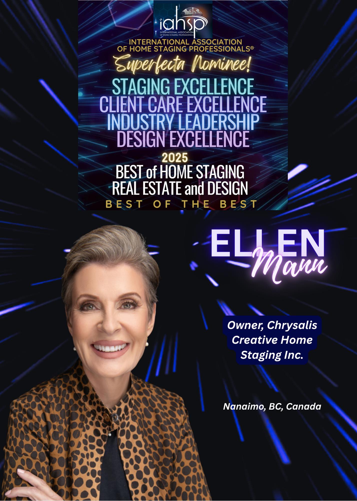 INTERNATIONAL ASSOCIATION OF HOME STAGING PROFESSIONALS’Superfecta Nominee STAGING EXCELLENCECLIENT CARE EXCELLENCEINDUSTRY LEADERSHIPDESIGN EXCELLENCE2025 BEST of HOME STAGING REAL ESTATE and DESIGNBEST OF THE BEST